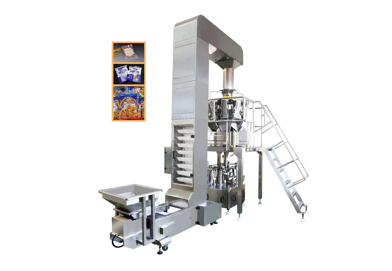 High-speed automatic vacuum packing system with multi-head weigher and pouch handling — ideal for a wide range of food applications.