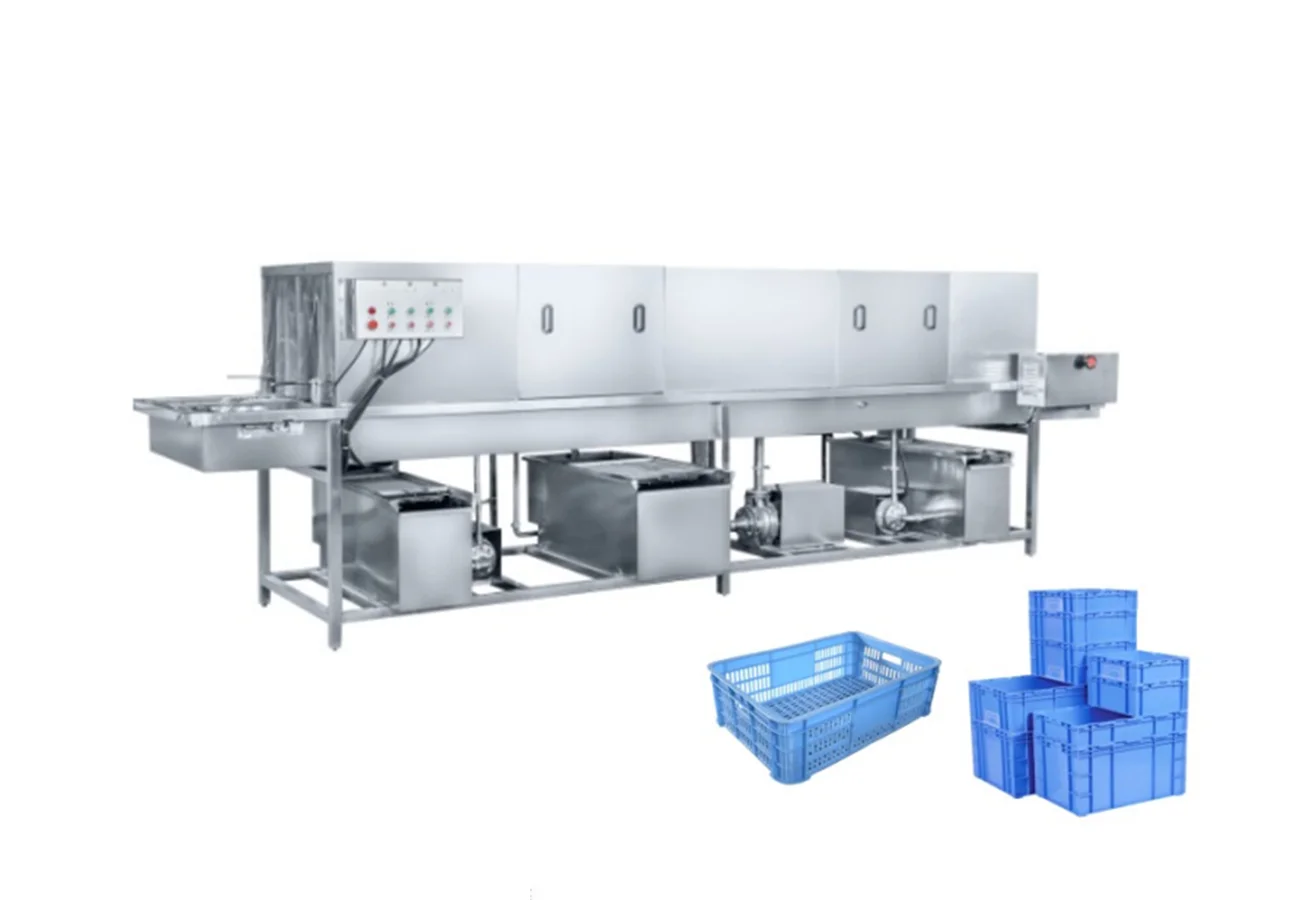 The Turnover Basket Washing Machine is designed for continuous, high-efficiency cleaning of plastic or metal turnover baskets used in food and industrial applications.